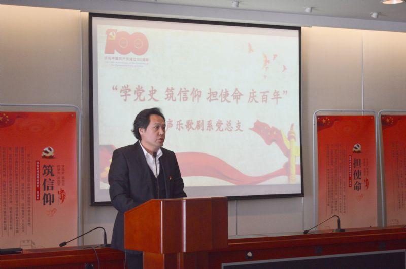 声乐歌剧系党总支高度重视师生党史学习教育,按照学院工作部署,整体谋划2021年度党史学习教育各项活动,向中国共产党成立100周年献礼。系主任张策、党总支书记韩春凌、党总支副书记贾鼐、副主任张永凯、刘丽杰以及全体党员师生、入党积极分子、入党申请人参加了活动。活动由贾鼐主持。