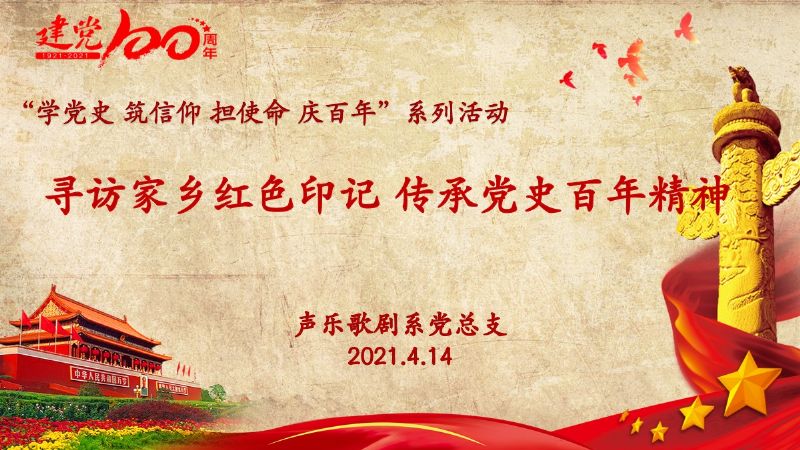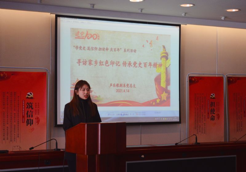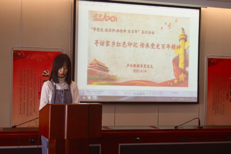 为深入贯彻落实党中央关于在全党开展党史学习教育的决策部署,认真学习领会习近平总书记在党史学习教育动员大会上的重要讲话精神,按照省委、省委教育工委的工作要求,结合学院《在全院党员中开展党史学习教育实施方案》和我系工作实际,声乐歌剧系党总支于2021年4月14日在办公楼406召开了“学党史 筑信仰 担使命 庆百年”系列活动之“寻访家乡红色印记 传承党史百年精神”活动。