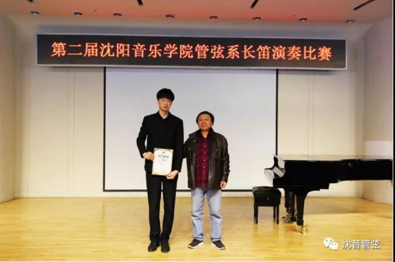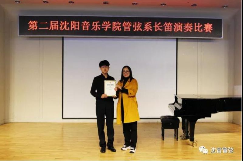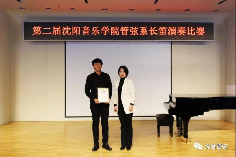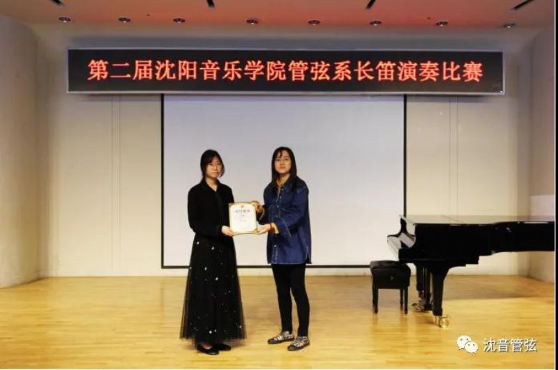 沈阳音乐学院音乐教育学院长笛教室孙晓琳为获得第六名选手2018级学生马克颁发获奖证书