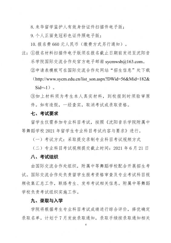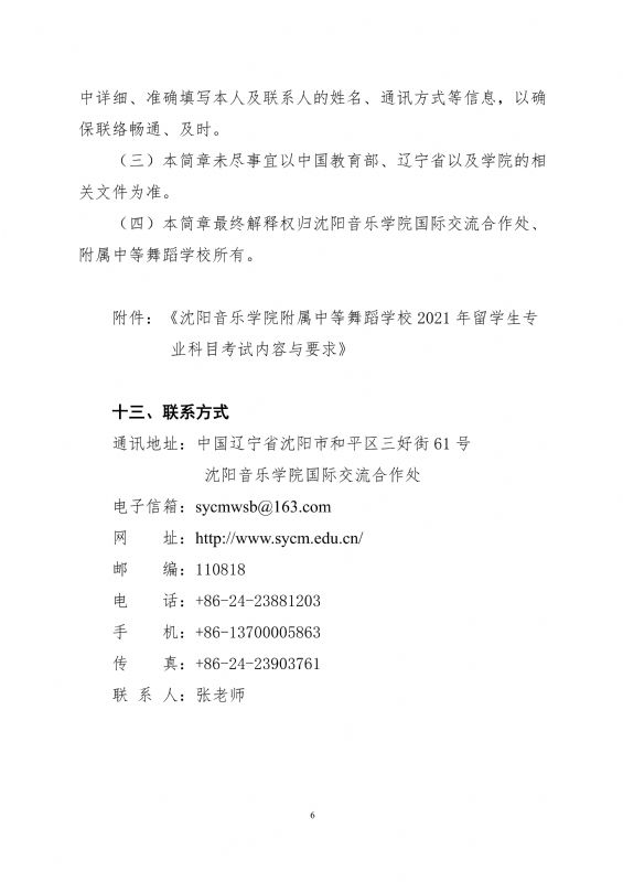 沈阳音乐学院附属中等舞蹈学校2021年留学生专业科目考试内容与要求.pdf
