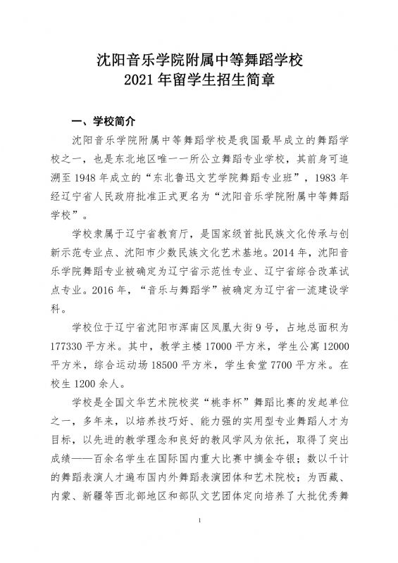 沈阳音乐学院附属中等舞蹈学校2021年留学生招生简章.pdf