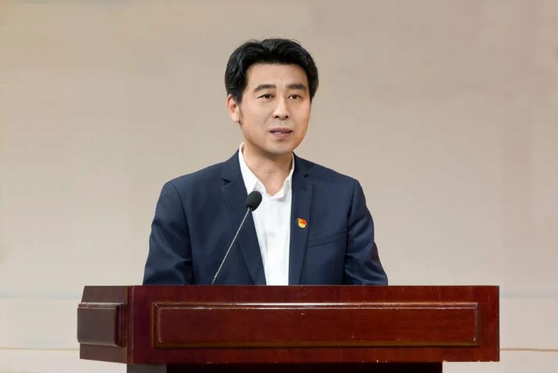 表彰结束后,党总支书记耿岩就学生党史学习教育作动员讲话,并以“深刻认识中国共产党为国家和民族作出的伟大贡献 ”为题,为与会师生讲授专题党课。他从中国共产党领导中国革命建设与改革发展的百年历程出发,梳理了中国共产党在“开天辟地”“改天换地”“翻天覆地”“惊天动地”四大历史时期取得的伟大成就,全面系统地回顾了近百年来中国共产党人为中国人民谋幸福、为中华民族谋复兴的初心和使命。他希望同学们将个人理想追求融入党和国家事业之中,紧跟时代前进的步伐,以时不我待、只争朝夕的精神,以滴水石穿、磨杵成针的毅力,以永不满足、攀登不止的态度,继承鲁艺传统、弘扬鲁艺精神,努力把自己锻炼成为学有所成、业有所精的栋梁之才。
