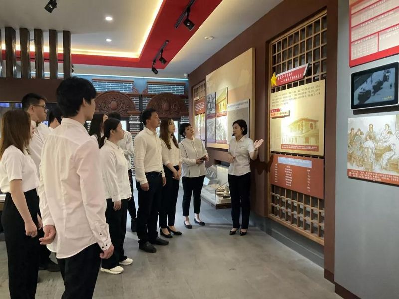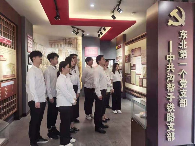 在讲解员的带领下,师生来到第一展厅,共同聆听并参观了 “东北第一个党支部”中共沟帮子铁路支部。展厅内,通过图文、雕像、影音全景再现了沟帮子党支部的建立、发展和斗争历史。