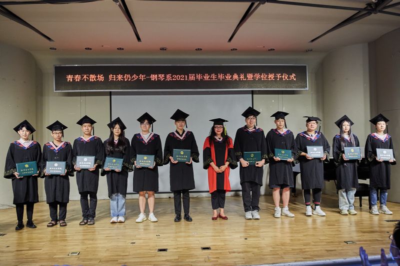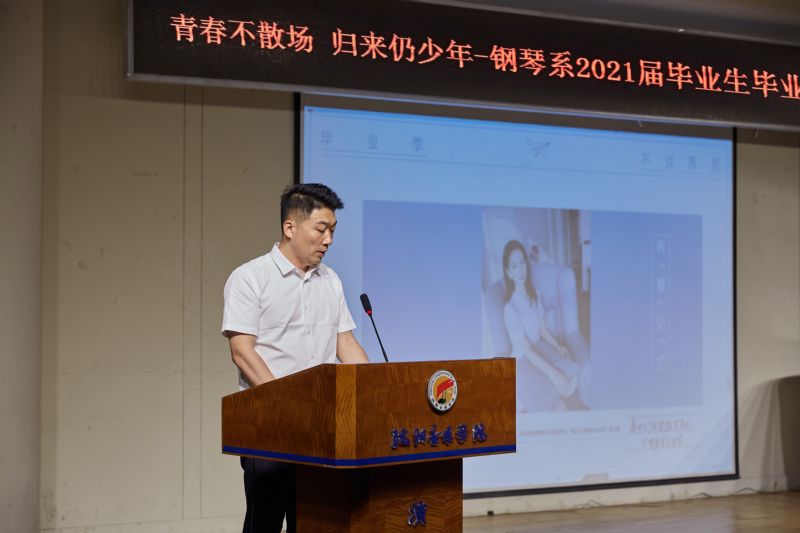 秀樾横塘十里香,水花晚色京年芳。在这烁石留金、簟纹如水的盛夏时节,钢琴系于6月24日在第二教学楼424多功能厅隆重举行“青春不散场 归来仍少年—钢琴系2021届毕业生毕业典礼暨学位授予仪式”,钢琴系领导班子、各教研室负责人、各研究生导师、本科毕业生导师、辅导员及2021届毕业生参加了本次毕业典礼,典礼由辅导员陶薇伊主持。