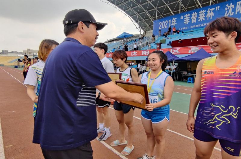 2021年7月17日,“菲普莱杯”沈阳地区高校大学生田径运动会在东北大学召开,我院经过前期选拔和积极备战,派队参加此次比赛,由公共基础部体育教研室主任赵莹带队,王琦、柳誉青、李迪、宋冬寒四位教师担任教练,经过两天的角逐,学生们顶着烈日,在赛场上奋力拼搏,展现了我院学生的风采,最终取得了乙组团体总分第三名的优异成绩,并获得体育道德风尚奖。