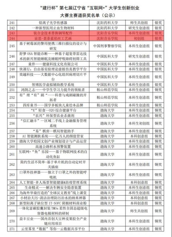 7月24日—28日,由辽宁省教育厅主办的第七届辽宁省“互联网+”大学生创新创业大赛暨第七届“互联网+”中国国际大学生创新创业大赛辽宁省赛区决赛在中国医科大学及网络端举行。我院民族声乐系《唱响峥嵘岁月——鲁艺青年艺术团》学生团队从94所高校的3万余个参赛项目中脱颖而出,获得省赛金奖的优异成绩,实现了我院在创新创业大赛上的历史性突破。