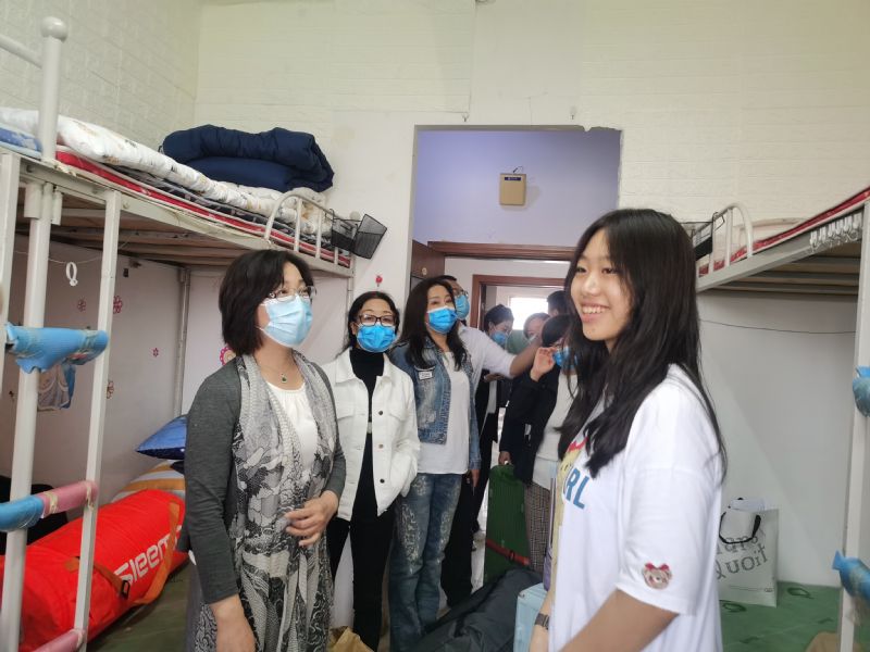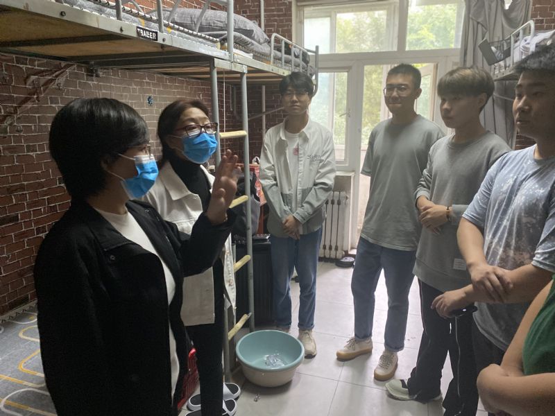 新生报到后,音乐科技系领导班子成员走访了新生寝室。