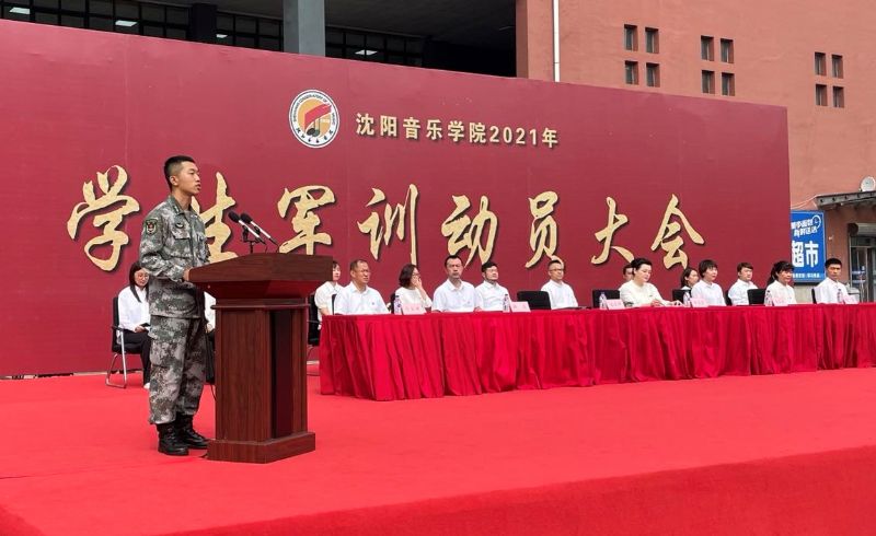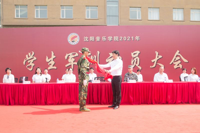 宋喜仁、吴厚兴、闫玉娇分别为军训团授旗。解放军31700部队教官代表杜宏龙、杨海彬、孟庆帅分别对全体参训学生作军训要求。参训学生代表作曲系叶晴昕、音乐教育学院黄勃源、舞蹈学院王一涵分别作表态发言。在全体师生合唱校歌《我们走在大路上》的嘹亮歌声中,动员大会圆满落幕。