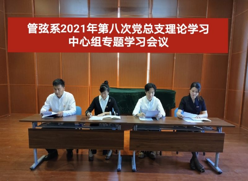 10月18日,管弦系召开2021年第八次党总支政治理论学习中心组专题学习会议,集体学习《中国共产党党徽党旗条例》、习近平总书记在2021年秋季学期中央党校(国家行政学院)中青年干部培训班开班式上的重要讲话。党总支理论学习中心组成员参加会议,会议由党总支书记陈璐主持。