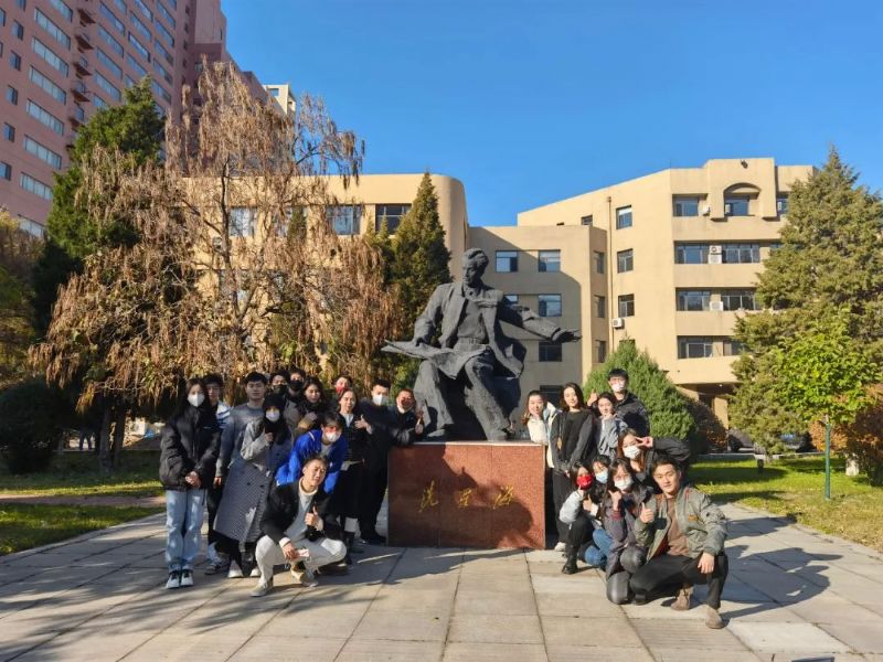 走出校史馆,师生们集体参观校园,继续感受学院厚重的红色历史。先后瞻仰了冼星海和劫夫塑像,并在沈阳音乐学院1954年建成的教学主楼和音乐厅前合影留念。