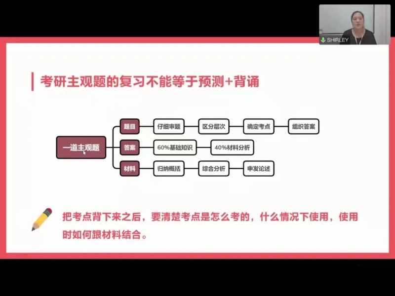 王成成针对考研政治所涉的相关题型备考、热点问题等方面依次进行解读。各位分享人从备考时间安排、备考心态调整、复习计划制定、身心健康等方面入手,结合自身经历,与大家分享了宝贵的考研经验和方法,解答了考研中的常见困惑,为考研路上的同学们在备考方面进行全方位的分析和解读。