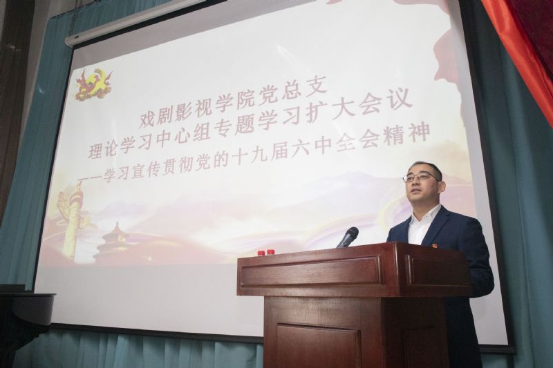 会上,戏剧影视学院党总支书记耿岩作题为《以史为鉴 开创未来深刻把握百年奋斗重大成就坚实锚定新征程伟大梦想——深入学习宣传贯彻党的十九届六中全会精神》的领学宣讲。