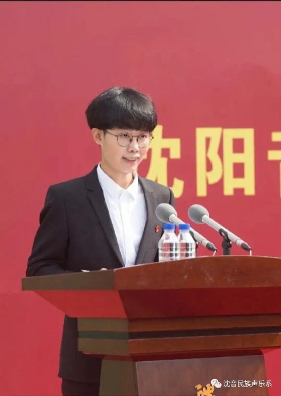 大家上午好。我是民族声乐系2021级研究生李戈童,很荣幸能够作为研究生新生代表在此发言。
