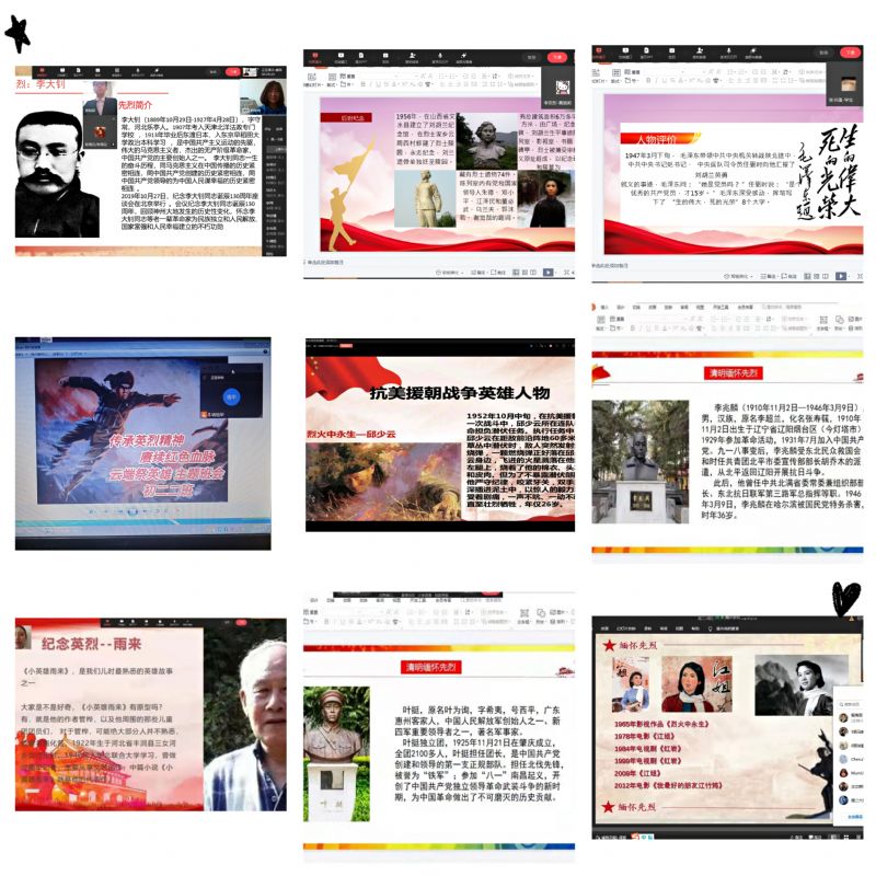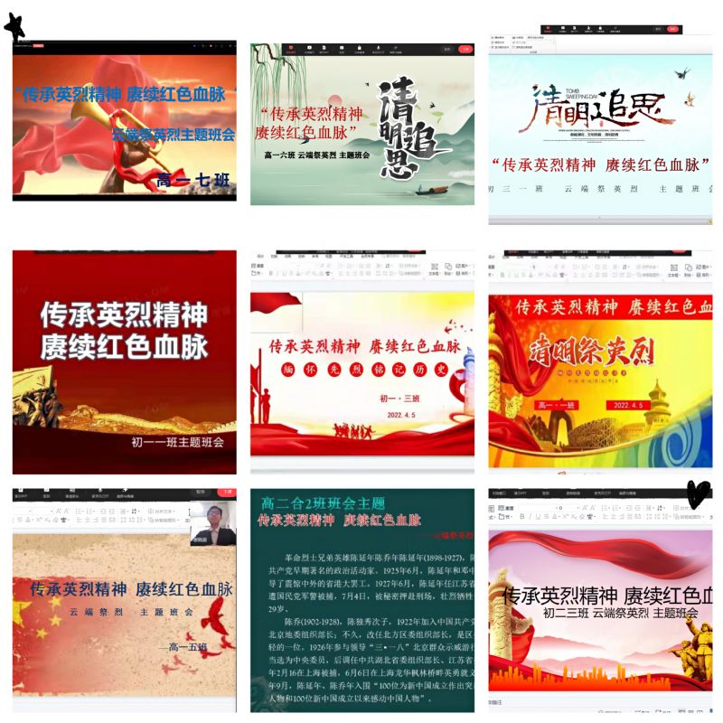 清明祭英烈,忠魂贯长空。为深入传承弘扬英烈事迹和精神,引导我校学生传承弘扬革命先烈的优秀品质,引领崇尚、缅怀、学习、捍卫英烈的风尚,不断增进学生爱党爱国情怀,推动我校德育教育的发展,丰富学生思想政治教育的内容,附中在清明节期间开展了以“传承英烈精神,赓续红色血脉”为主题的“云端祭祀英烈”活动。