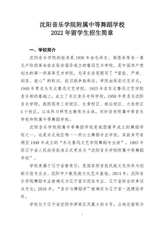 沈阳音乐学院附属中等舞蹈学校2022年留学生招生简章.pdf