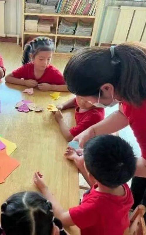 午睡过后,团队成员为小朋友们上了一堂生动的音乐课,教授小朋友演唱歌曲《童心向党》,以学红歌、唱红歌的形式激励新时代少年儿童学唱传唱红色歌曲,把红色记忆、红色传统、红色基因牢牢植入少年儿童的心灵。当大家齐唱这首经典曲目时,现场氛围达到高潮,展现出孩子们对中国共产党、对祖国母亲的无限热爱之情。