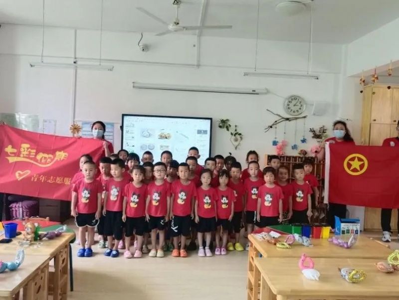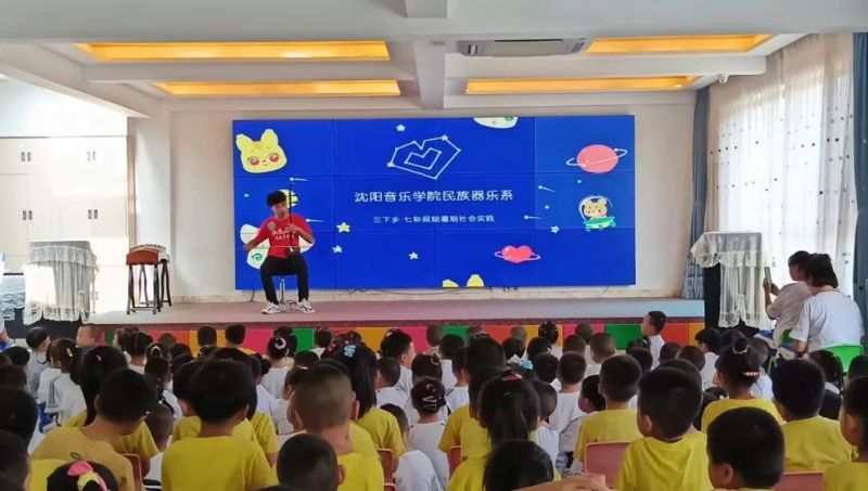 民族器乐系大学生“红色大连”党史学习教育团,也是“七彩假期”国家志愿服务示范团队,所有成员统一课程设计、共同备课、充分利用中国青年志愿者协会派发物料包的前提下,在各自所在地开展相应志愿服务活动。8月15日,团队成员走进大连市炮台镇博乐启迪幼儿园,为280余名孩子奉献了一场丰富精彩的红色课堂,充分发挥国家示范团队的先进性,展示省级重点团队的专项特点,用实际行动服务乡村振兴,用“奉献、友爱、互助、进步”精神谱写志愿者的青春之歌。