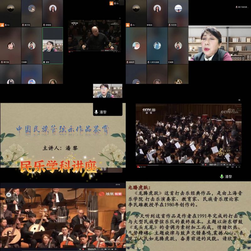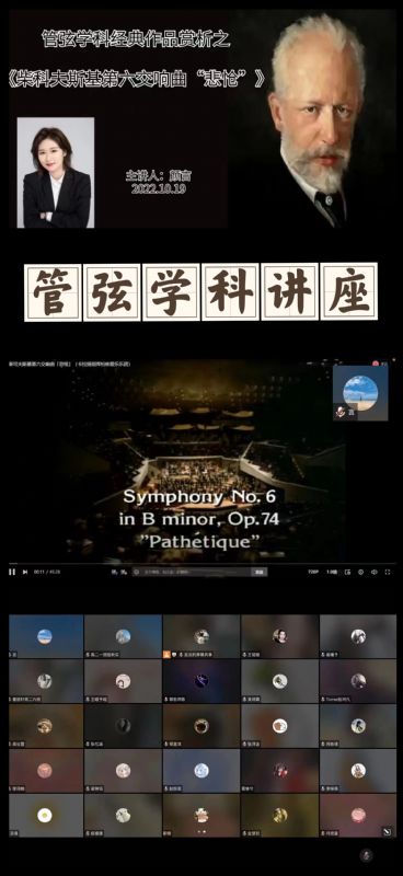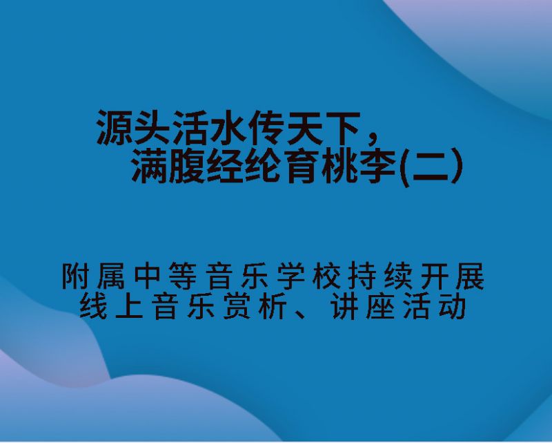 10月16日—10月22日,为持续丰富我校师生线上学习生活,进一步活跃学术气氛,引导学生树立正确的价值观,由附属中等音乐学校理论学科、演唱学科、键盘学科、管弦学科、民乐学科精心准备,以线上参与、线下实践的形式举办了五场线上音乐赏析、讲座活动。