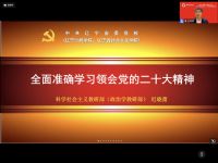 迟晓蕾副教授以“全面准确学习领会党的二十大精神”为主题,引经据典,详尽阐述了党的二十大召开的重要意义。随后他紧密围绕党的二十大报告的主要内容、贯彻落实好党的二十大作出的重要决策部署两方面内容对党的二十大精神进行系统宣讲和深入阐释,系统梳理了二十大报告中的新观点、新论断和新部署。进一步加深了广大师生对党的二十大精神丰富内涵和精髓要义的深刻理解。