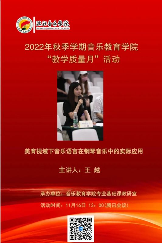 为切实保障疫情期间线上教学质量,增强学生们的学习热情,2022年11月16日13时,音乐教育学院专业基础课教研室王越老师,以线上形式开展了题为《美育视野下音乐语言在钢琴音乐中的实际应用》公开课。