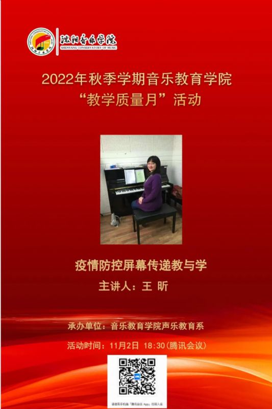 2022年11月2日,声乐教育系举办了由王昕老师主讲的公开课《疫情防控屏幕传递教与学》。