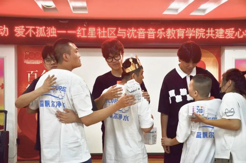 为深入学习贯彻习近平总书记在庆祝中国共产主义青年团成立100周年大会上的重要讲话精神,引导我院学子扎根辽沈大地,在社会课堂中“受教育、长才干、作贡献”,积极发扬沈阳青年在志愿服务中的宝贵经验,为社会做出贡献。2022年7月15日,音乐教育学院分团委“守护星”志愿者团队到沈阳市和平区新华街道红星社区开展了“蓝色行动 爱不孤独——蓝色生日会”关爱孤独症儿童爱心活动。新华街道红星社区书记,沈阳康纳洲孤独症家庭服务中心创始人、理事,音乐教育学院党总支副书记,学生管理办公室主任,院办、教管、学管联合党支部书记,分团委书记,星宝及其监护人,全体志愿者共50余人参加了活动。