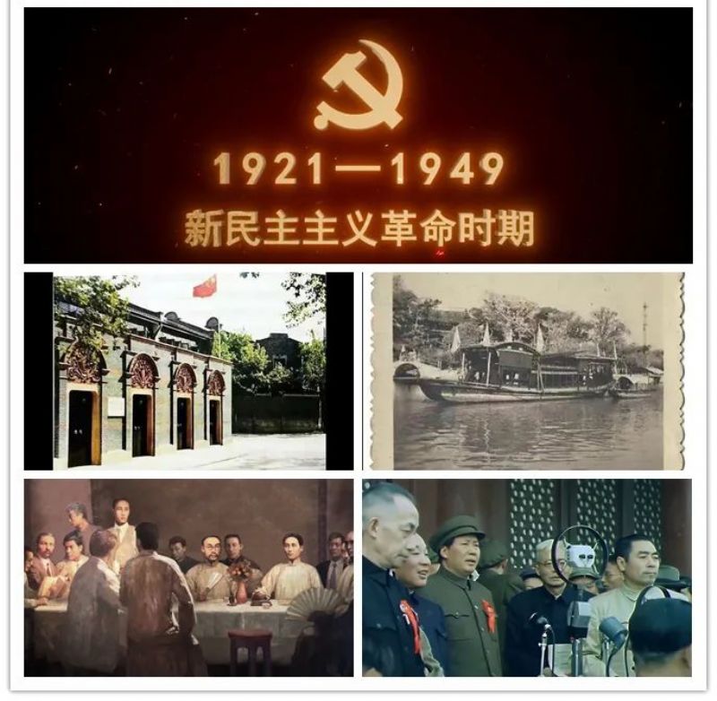 第一时期是从1921年7月中国共产党建立至1949年10月中华人民共和国成立的新民主主义革命时期,新中国的成立,标志着中国共产党领导的人民大众的反帝反封建的新民主主义革命的胜利,宣告中国人民从此站立起来了!