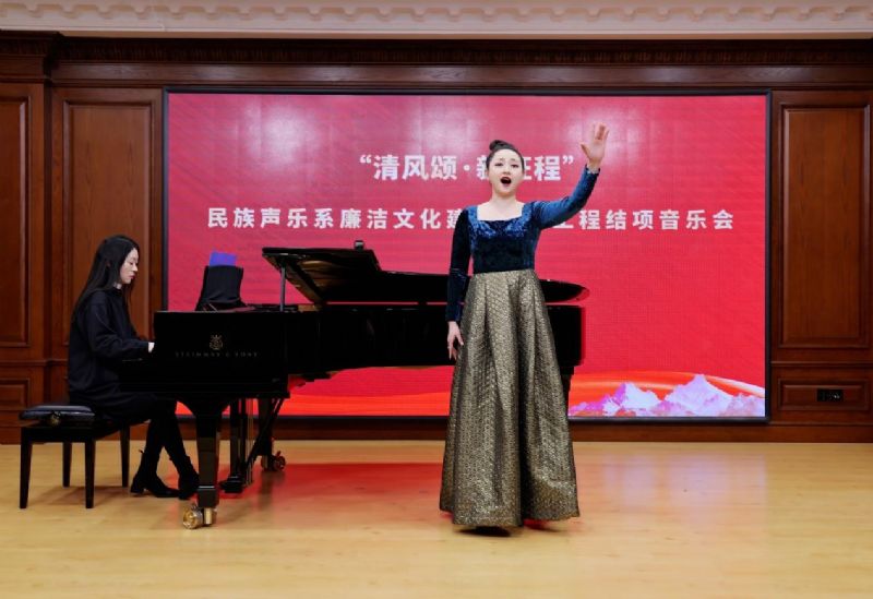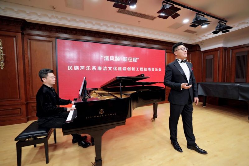 倡导廉洁文化新风尚,弘扬风清气正主旋律。在党的二十大精神指引下,民族声乐系党总支认真贯彻落实习近平总书记在十九届中央纪委六次全会上的重要讲话精神和省纪委十三届二次全会精神,有效落实学院“作风建设提升年”活动和廉洁文化建设方案,营造崇尚廉洁、风清气正的校园氛围。12月5日,以弘扬廉洁理念、营造廉洁环境、践行廉洁规范为导向,倾力打造的“清风颂·新征程”民族声乐系廉洁文化建设创新工程结项音乐会在旺族琴行音乐厅精彩呈现。