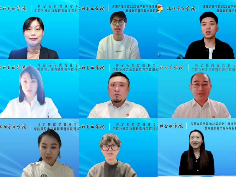 为深入学习贯彻党的二十大精神,贯彻落实习近平总书记关于就业工作的重要论述,按照《教育部办公厅关于开展全国高校书记校长访企拓岗促就业专项行动的通知》的文件要求及学院党委的工作部署,12月8日13时,沈阳音乐学院戏剧影视学院采用云上双选直播形式,成功举办了2023届毕业生线上供需双选会。沈阳音乐学院副院长冯志莲出席会议,学院创新创业中心、就业指导中心主任宋洋、副主任褚祎楠,戏剧影视学院领导班子,各单位、各部门负责人,各党支部书记,毕业班辅导员以及2023届全体毕业生参加会议。会议由戏剧影视学院院长杨喆主持。