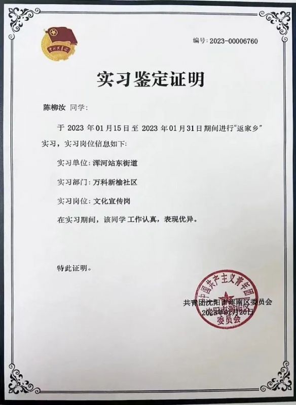 实践单位:中国共产主义青年团沈阳市皇姑区委员会四台子街道