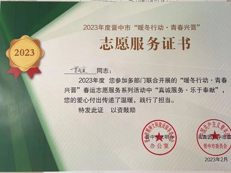 实践单位:山西省晋中市新青年高校志愿者联合服务中心