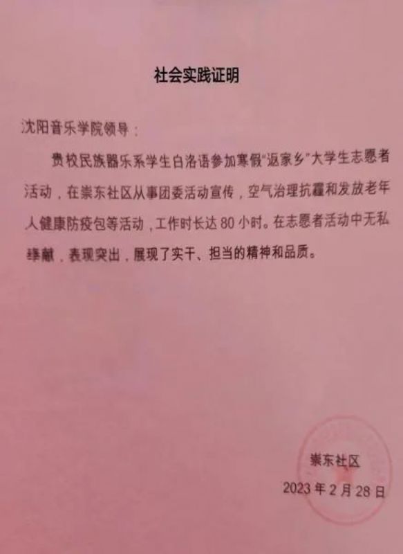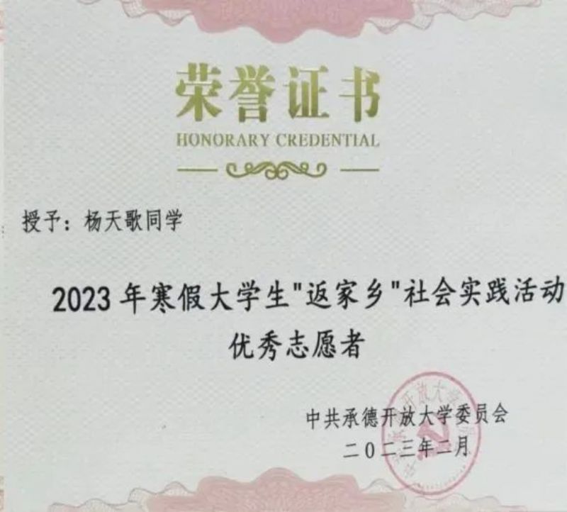 为全面贯彻落实党的二十大精神,深入领会习近平总书记关于青年工作的重要思想,坚持“受教育、长才干、作贡献”的宗旨,寒假期间,民族器乐系分团委积极发动学生返回家乡参与社会实践,深入开展政务实践、企业实践、公益服务、社区服务、乡村振兴、文化宣传等活动,教育引导民乐学子在服务家乡、服务人民中学思践悟习近平新时代中国特色社会主义思想和党的二十大精神。这个寒假,民乐学子共有9人通过“返家乡”平台申请实践岗位,51人通过其他途径申请岗位,参与率占学生总数近20%,征集实践案例60个,在基层服务中彰显新时代青年担当,展现青春风采。在此对30项优秀活动分三期予以展示,让我们一起来看看他们的“返家乡”实践故事吧!
