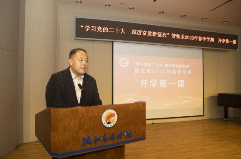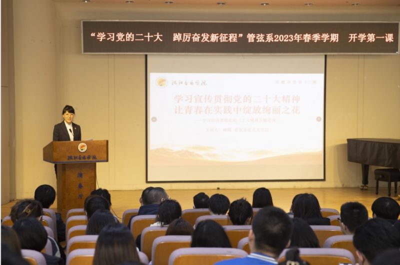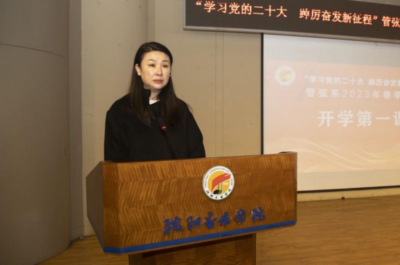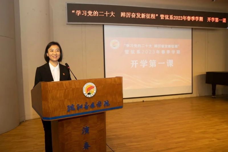 管弦系党总支书记陈璐以“学习宣传贯彻党的二十大精神,让青春在实践中绽放绚丽之花”为题,饱含深情地讲授了“开学第一课”。她带领同学们回顾梳理了党的二十大报告中所阐释的主要内容,并结合中国式现代化与青年发展的关系问题进行了重点讲授。她勉励同学们,作为新时代青年,既要做改革的生力军又要做创新创业的主力军,更要做科技创新的后备军。同时,她向同学们提出了三点希望:一是迅速兴起学习宣传贯彻党的二十大精神的热潮,以学深悟透党的二十大精神为目标,切实做到理论学习的入脑入心;二是作为新时代青年,在以中国式现代化全面推进中华民族伟大复兴的重大历史节点上,不能彷徨,不能掉队,更不能跑偏,要努力做有志青年、有德青年、有责青年、有为青年;三是要秉承“紧张、严肃、刻苦、虚心”的校训精神,树立“我为沈音添彩,沈音为我荣光”的责任感、使命感,把青春奋斗融入党和国家事业,让青春在火热的实践中绽放绚丽之花!