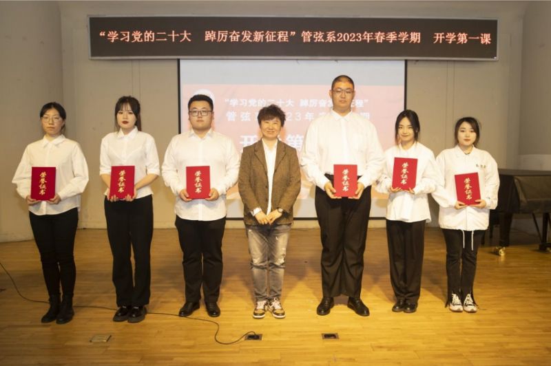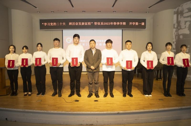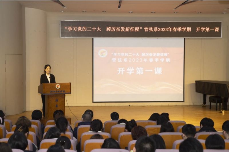 律回春晖渐,万象始更新。为学习宣传贯彻党的二十大精神和习近平总书记关于教育工作的重要论述,切实增强管弦系师生的责任感和使命感,激励我系师生振奋精神、接续奋斗、锐意进取、再创佳绩,3月22日下午,管弦系在第二教学楼424多功能厅组织开展了“学习党的二十大 踔厉奋发新征程 ”开学第一课主题活动。管弦系全体师生参加了本次活动。