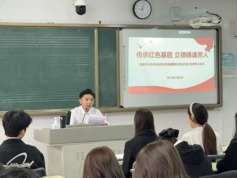 在“传承红色基因 立德铸魂育人”红色教育分享会上,民族声乐系文艺轻骑兵小分队的5名学生党员分别为与会师生们分享了赴丹东抗美援朝纪念馆参观学习的心得与感悟,字字真切、声声动人,带领同学们追寻埋骨他乡的英烈忠魂中热烈燃烧着的民族精神,共同回望73年前那段气壮山河、英勇无私的峥嵘岁月。抗美援朝伟大的英雄壮举与斗争精神令大家无比动容,天地英雄气、千秋尚凛然,满腔爱国志、一生来作答。