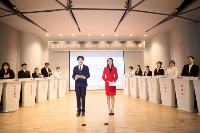 胸藏文墨怀若谷,腹有诗书气自华。为贯彻落实习近平总书记关于弘扬中华优秀传统文化的重要论述,大力弘扬社会主义核心价值观,近日,由团委主办的沈阳音乐学院第二届大学生传统文化节之“品中华诗词 寻文化根脉”诗词大赛在三好校区成功举办,全院300名师生代表观看比赛。比赛由戏剧影视学院学生赵家奇、杜昕濡主持。