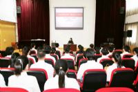 仪式前,唐昊忻老师围绕"筑牢思想根基,凝聚向上青春合力"作专题团课。团课共分为三部分,一是介绍共产主义青年团的由来和发展历史;二是领学团章、党章部分内容;三是学习习近平总书记在纪念五四运动100周年大会上的讲话。