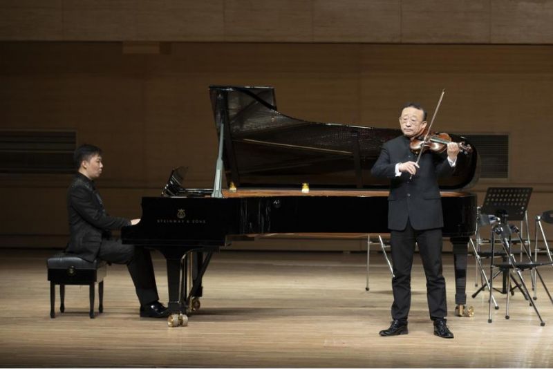 为深入开展学习贯彻习近平新时代中国特色社会主义思想主题教育,搭建文艺交流平台,提高人才培养质量,推进辽宁文艺事业繁荣发展,4月22日,“我和我的祖国”室内乐作品音乐会在我院音乐厅成功举办。十三届全国政协文化文史和学习委员会副主任、中国人民政协理论研究会副会长、满天星业余交响乐团团长叶小文,中央歌剧院院长、艺术总监、著名小提琴演奏家刘云志,中央歌剧院一级演奏员、大提琴首席杨娣携手我院室内乐团,共同演绎多部中外经典室内乐作品,为观众奉献了一场高品质的艺术盛宴。十三届全国政协经济委员会副主任、辽宁省人民政协理论研究会会长、省政协原主席夏德仁,省委宣传部副部长杨利景,我院领导班子成员和部分师生共同欣赏音乐会。