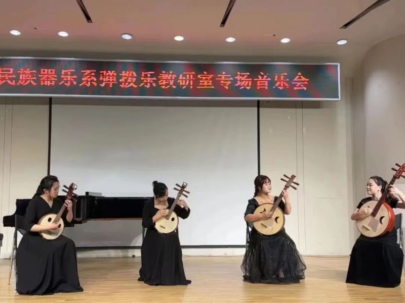 为开展好学习贯彻习近平新时代中国特色社会主义思想主题教育,推动学习指导实践,培养全面发展的优秀人才。4月28日,民族器乐系弹拨教研室在第二教学楼多功能厅举办了“民族器乐系弹拨乐教研室专场音乐会”。本场音乐会共11首作品,由各年级不同专业的学生参与演出。整场音乐会包含独奏,协奏,重奏等多种演奏形式,更有弹拨乐器与管乐、打击乐器的合作。希望学生通过本次音乐会能够开拓视野,学习实践相结合,提升综合素质,为专业学习指引方向。
