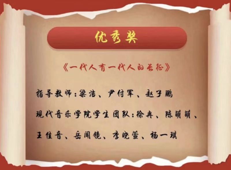 在辽宁省教育厅举办的2022年辽宁省高校大学生讲思想政治理论课公开展示活动中,沈阳音乐学院选送的三部参赛作品之一、我院流行声乐系学生团队的《一代人有一代人的长征》荣获省级“优秀奖”。