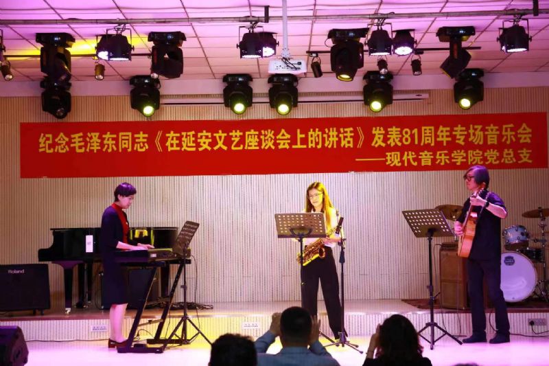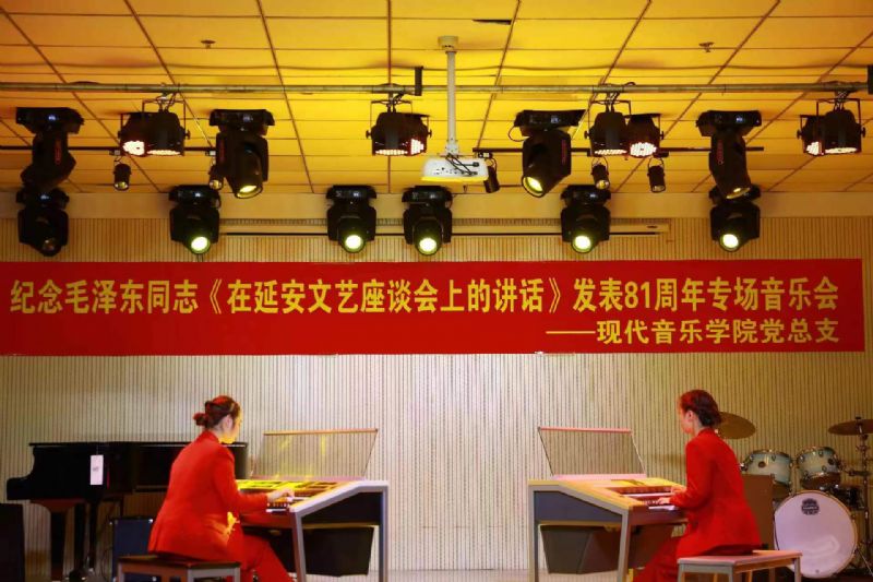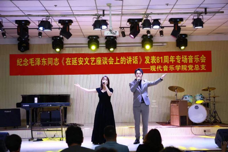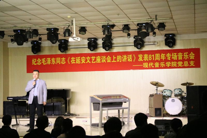 为纪念毛泽东同志《在延安文艺座谈会上的讲话》发表81周年,重温《讲话》的深邃思想和宝贵精神,准确领会和把握党领导百年文艺发展道路的历史逻辑、理论逻辑和实践逻辑及当代价值,切实增强主题教育的感染力和实效性,团结引领广大青年坚定跟党走、建功新时代。5月24日,现代音乐学院党总支组织开展纪念毛泽东同志《在延安文艺座谈会上的讲话》发表81周年专场音乐会。领导班子成员、党支部书记及支部委员、党员师生代表、入党积极分子代表共计70余人参加活动。