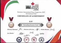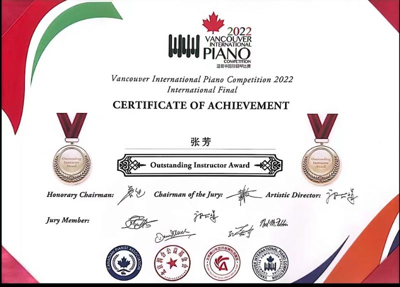 本届温哥华国际钢琴比赛由加拿大钢琴家协会、北京市青少年艺术发展专项基金联合主办。大赛邀请了美国茱莉亚音乐学院、英国皇家音乐学院、美国曼哈顿音乐学院、中央音乐学院、上海音乐学院、中国音乐学院、星海音乐学院、武汉音乐学院、浙江音乐学院等国内外顶级音乐院校的权威专家及钢琴家组成评委团。疫情防控期间采用线上的方式,吸引了5000余名国内外优秀选手参赛,搭建了实现钢琴梦想的国际舞台。在此向获奖的王苒溪同学及其指导教师张芳教授表示祝贺!