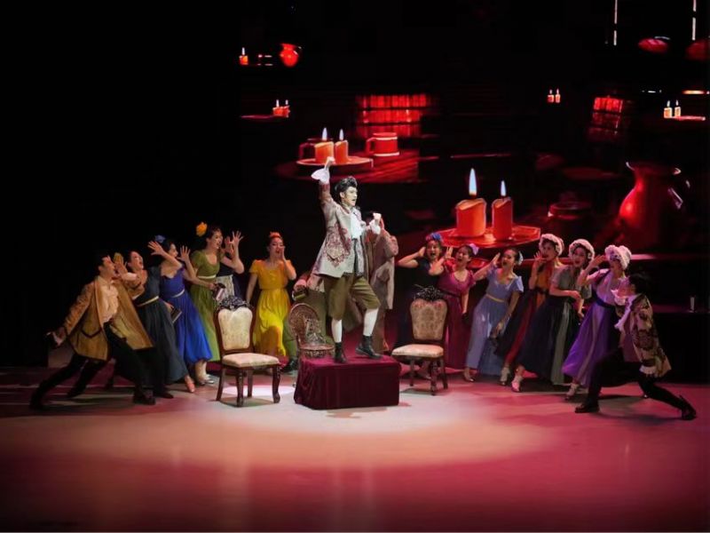 在音乐剧剧目片段展示环节,同学们表演了《灰姑娘》《美女与野兽》《汉密尔顿》等四部经典音乐剧片段。在这一环节中,同学们将丰富多样的音乐、具有动感的节奏、编排精彩的表演,以及个性鲜明的表演风格,给每一个角色赋予了生命,使观众在剧场中沉浸式的理解并感受剧目的故事发展,带动观众投入剧情,与角色产生了共鸣。同学们充满活力的表演以及体现团队合作力量的演出配合,都展示出了音乐剧融合音乐、舞蹈、戏剧的独特艺术魅力,给观众带来了愉悦的艺术享受,现场气氛热烈,观众用持续不断的掌声表达对同学们的肯定,将整场演出推向高潮。