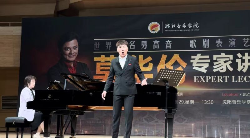 5月29日下午,声乐歌剧系邀请世界著名男高音、歌剧表演艺术家莫华伦在音乐厅举办声乐大师班,沈阳音乐学院音乐厅座无虚席,师生们翘首以盼。我院主持行政工作副院长冯志莲为莫华伦颁发了客座教授聘书,仪式由声乐歌剧系主任张策主持。仪式结束后,与会领导和师生共同聆听了莫华伦的声乐大师课。
