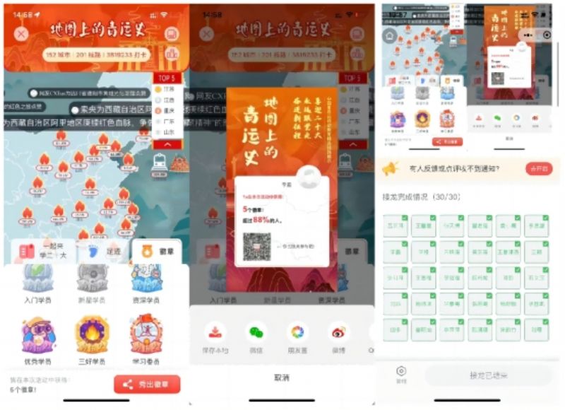 “地图上的青运史”线上打卡活动,钢琴系分团委积极动员各年级团员青年下载“中国青年报APP”,并在“地图上的青运史”平台中的“辽宁六地线路之共和国工业奠基地线路”进行线上学习,大家广泛参与了打卡、点赞、交流及点亮徽章等活动。截至目前,钢琴系全体本科生及研究生276人均已完成3个徽章及以上的收集任务,平均打卡签到留言至3-6个省市地区。