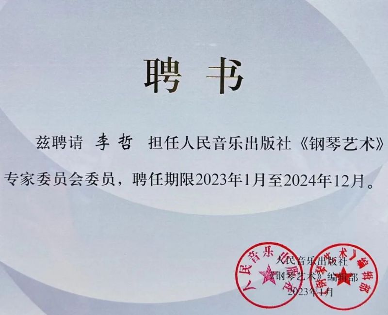 由人民音乐出版社主办,《钢琴艺术》承办的第六届“全国钢琴教学研讨会”于4月26日至30日在宁波大学举办。钢琴系主任李哲教授受邀参会,并受聘担任人民音乐出版社《钢琴艺术》“专家委员会委员”。