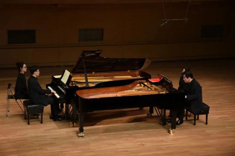 4月28日19:00,钢琴系在音乐厅举办本次艺术实践周最后一场实践活动,邀请到中国音乐学院教师冯怀宇与中央音乐学院附中教师姜波强为学院师生送上了一场精彩的双钢琴音乐会,音乐会由副主任崔秀峰主持。