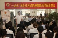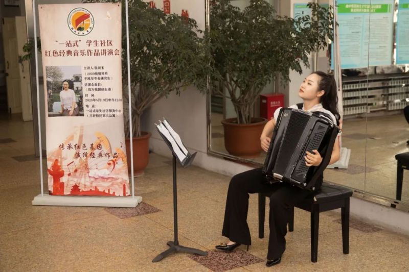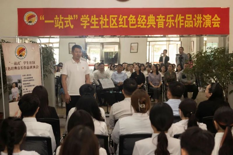 为扎实推进主题教育开展,落实立德树人根本任务,全面开展“一站式”学生社区“思政+”育人活动,结合学院实际,5月19日由学生处主办、钢琴系承办的“一站式”学生社区红色经典音乐作品讲演会在三好校区“一站式”学生服务中心(第三公寓)举行。党委宣传部、团委、学生处、钢琴系有关领导出席活动,50余名学生代表参加讲演会。本期讲演会由钢琴系辅导员冯磊主持,主讲人为钢琴系2020级手风琴演奏专业研究生张川玉,讲演曲目为《我为祖国献石油》。