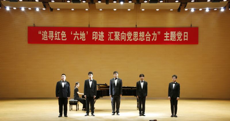 为贯彻落实习近平总书记关于用好红色资源、赓续红色血脉的重要指示精神,深入挖掘辽宁 “六地”红色资源蕴含的红色基因,提升党员师生思想政治素质, 6月27日,第二党支部在大音乐厅举办“追寻红色‘六地’印迹,汇聚向党思想合力”主题党日活动。学校领导班子成员、党员师生100余人参加活动。主题党日活动由第二党支部书记韩嵩楠主持。 主题党日共分为六个篇章。第一篇章由支部党员、副校长张明讲述抗日战争起始地。从九一八事变东北军620团团长王铁汉打响东北抗战第一枪,到满洲省委发表“919宣言”,再到辽宁各地开展抗日救亡运动,描绘了中华儿女在中国共产党的领导下开展波澜壮阔的抗日战争画面。随后,学生庚思羽用竹笛演奏《小八路勇闯封锁线》,时而轻快悠扬,时而低回婉转,时而高亢激昂,再现了小八路冒着枪林弹雨通过敌人封锁线,在负伤后重上战马递送情报的情景,展现了中华儿女机智勇敢,面对抗日战争视死如归的伟大气魄。