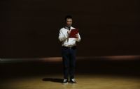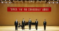 第五篇章支部党员张悦讲述共和国工业奠基地。从第一台机床、第一架歼击机,到第一艘万吨级远洋货轮、第一艘航空母舰,再到辽宁承担数百个国家重点项目,创造一千余个共和国工业史第一,深情赞颂了辽宁为共和国的工业体系和国防体系建设做出的卓越贡献。男声独唱《我为祖国献石油》、女声三重唱《共和国之恋》、二胡独奏《巾帼》、男女声对唱《如愿》,展现了附属中等音乐学校师生对党对祖国的无限热爱与眷恋。